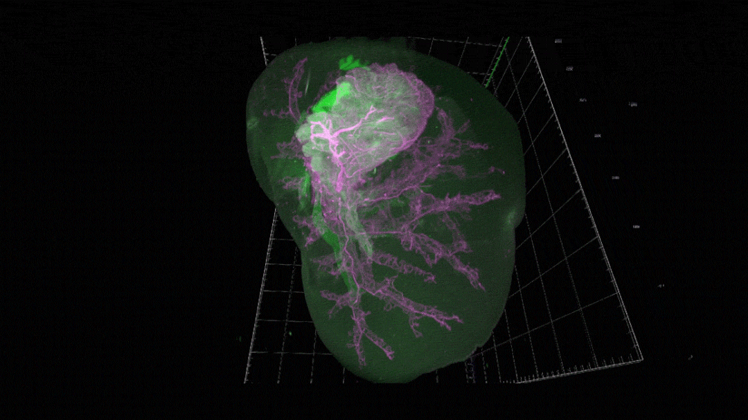在组织、器官甚至整个生物体的层面进行成像,研究血管神经的分布,或是蛋白的空间表达,可以帮助科学家们理解生物体的生理和病理机制。然而,脑、心、肝、脾、肺、甚至骨头等组织器官大都是不透明的,荧光无法穿透,组织深层很难进行荧光成像。